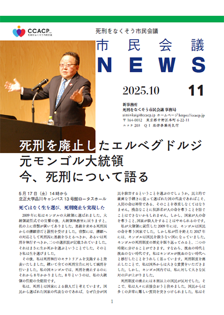 25年5月17日に立正大学で開催された「死刑を廃止したエルベグドルジ元モンゴル大統領 今、死刑について語る」の講演内容の仔細を収録しています。当時参加された方もされなかった方も、読み応えのある内容です。